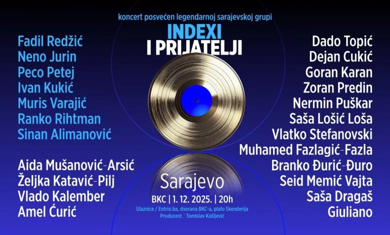 (Patria) - Tradicionalni koncert "Indexi i prijatelji" bit će održan 1. decembra u Bosanskom kulturnom centru u Sarajevu s početkom u 20.00 sati, u čast kultne bh. grupe čijim je notama i stihovima pisana muzička historija ovih prostora.