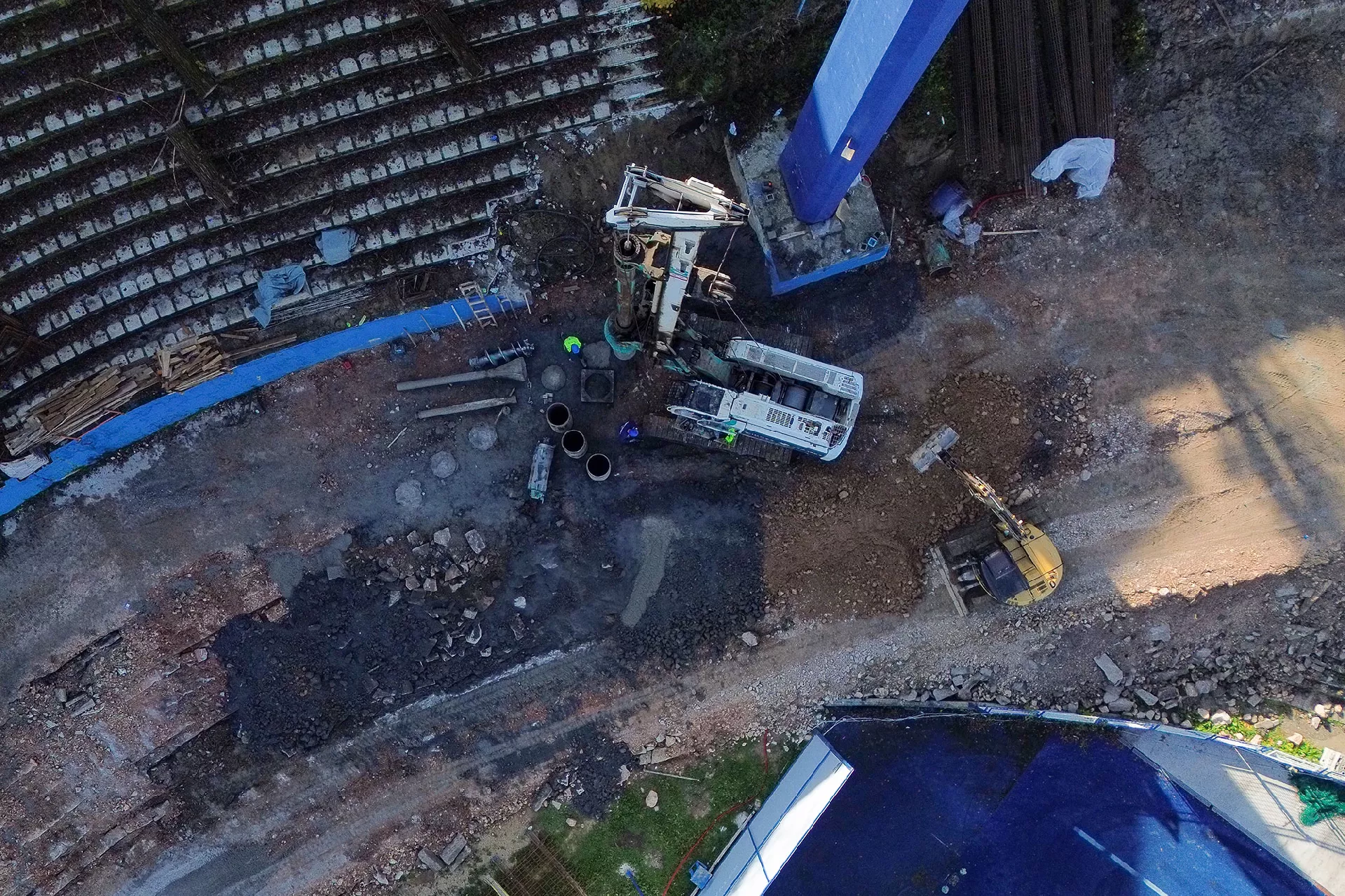 Do sada je izvršeno bušenje i betoniranje 74 šipa - koji obezbjeđuju stabilnost čitave strukture i garantuju njenu dugoročnu sigurnost.