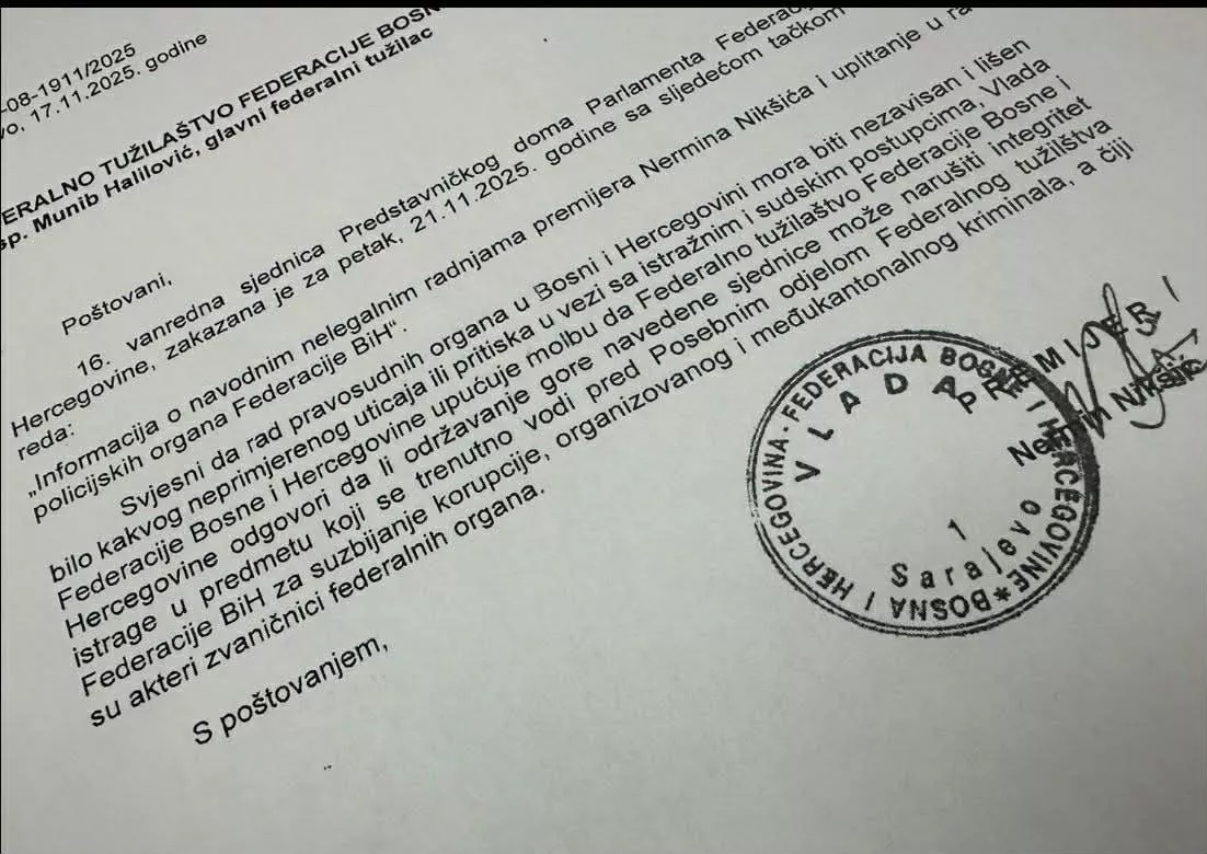 (Patria) - Vlada Federacije BiH poslala je molbu Federalnom tužilaštvu, a koju potpisuje premijer Nermin Nikšić, u kojoj traži očitovanje o tome da li će sjednica Predstavničkog doma PFBiH, na kojoj je jedna od tačaka njegova uloga u predmetu “Munjić i drugi”, narušiti integritet istrage u ovom spomenutom predmetu.