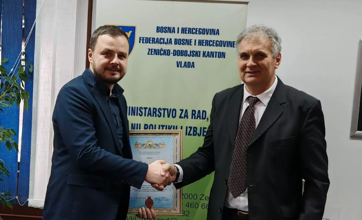 Ministar Šimunović je ovom prilikom uručio zahvalnicu Zavodu za bolesti ovisnosti ZDK za izuzetnu podršku, razumijevanje i predan rad na jačanju sistema socijalne zaštite, kao i za kontinuiranu saradnju u pružanju podrške osobama s problemom ovisnosti.