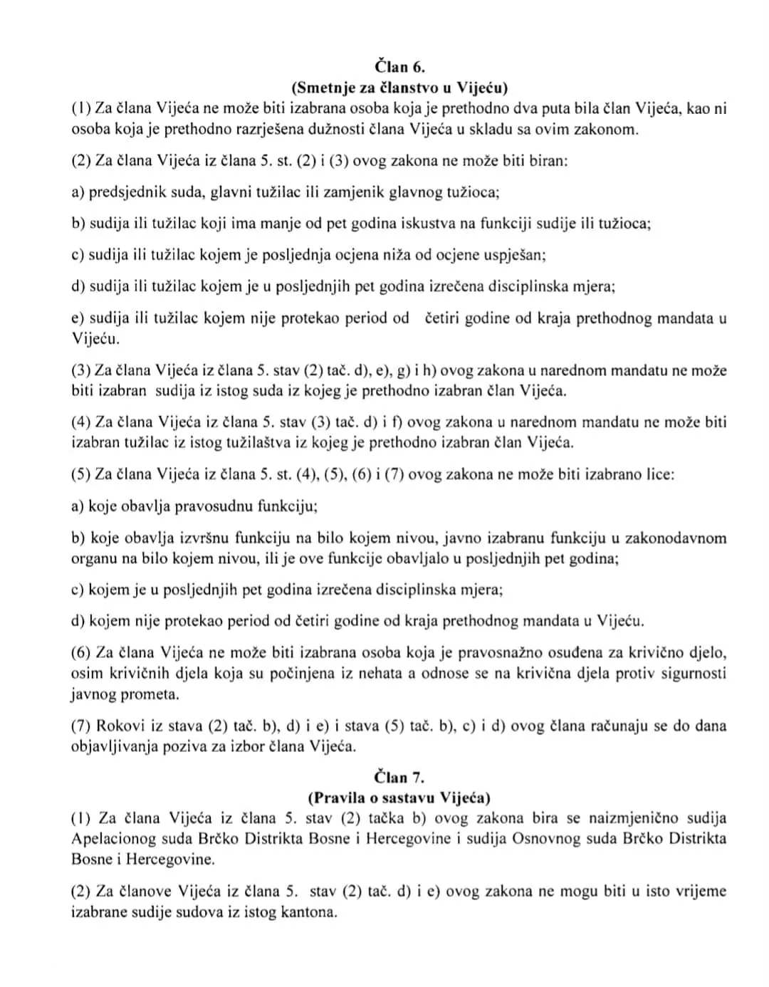 Za člana VSTV-a ne može biti birana osoba koja je već dva puta bila član VSTV-a ili koja je prethodno razriješena dužnosti ili sudija ili tužilac kojem nije protekao period od četiri godine od kraja prethodnog mandata u Vijeću. Nacrtom zakona član VSTV-a ima mandat od pet godina i ne može biti biran na uzastopni mandat.