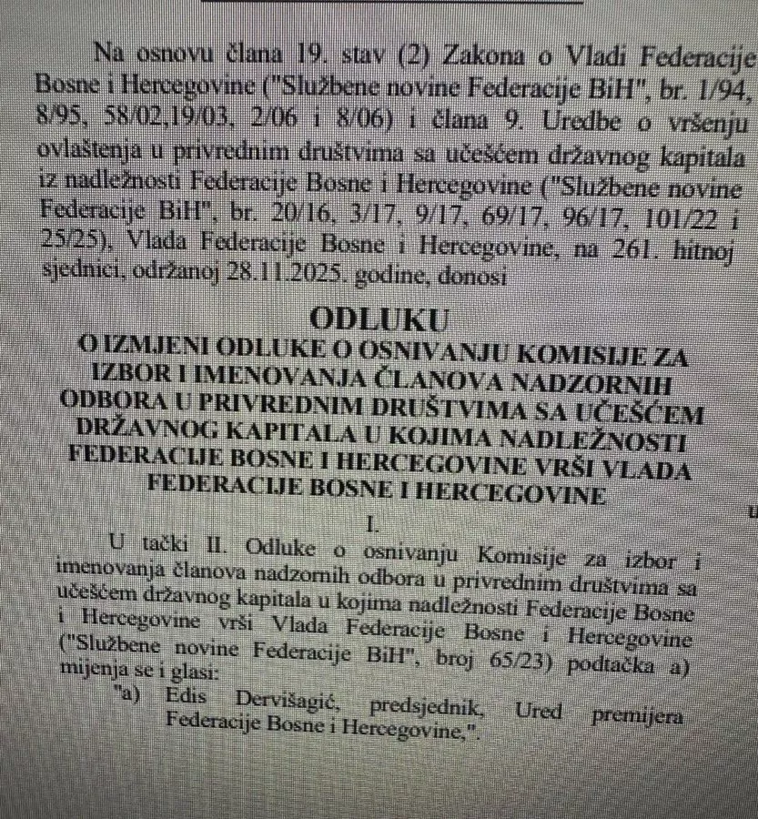 Kada je riječ o ovoj Komisiji ona je nadležna za predlaganje članova nadzornih odbora preduzeća u vlasništvu Vlade FBiH.