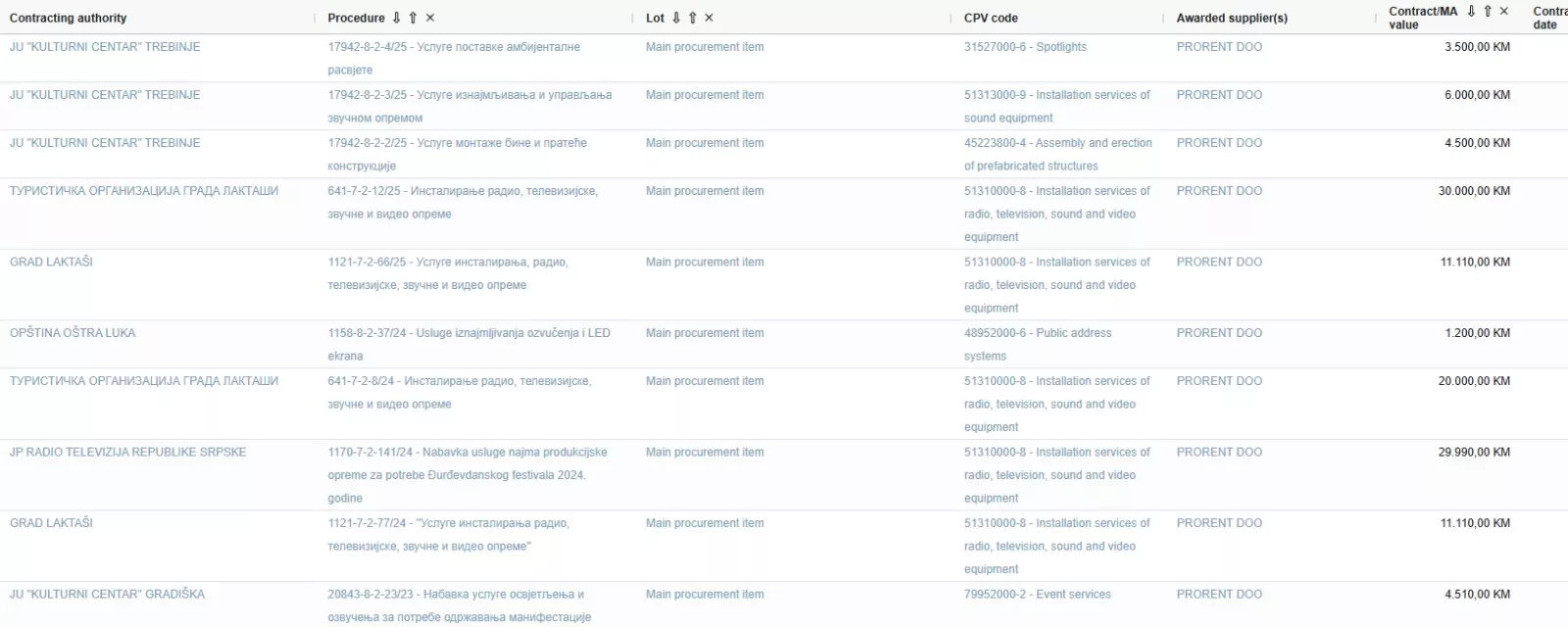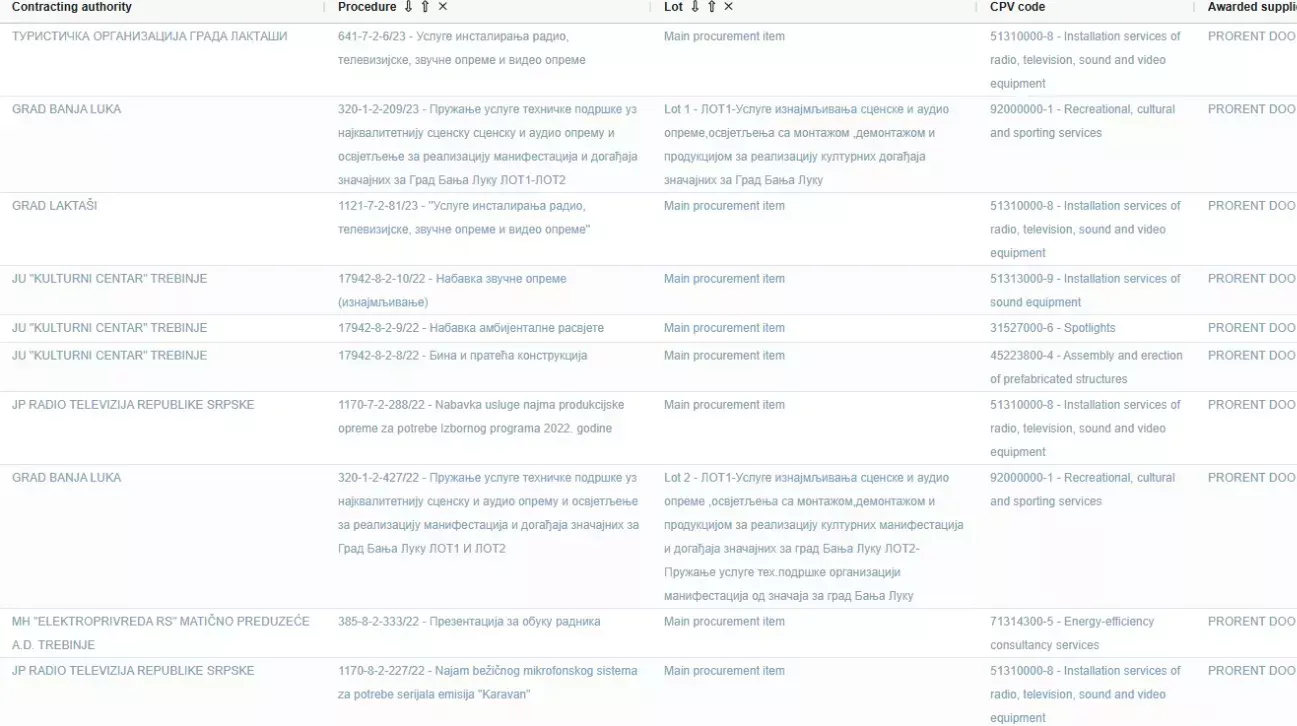 Posao vrijedan 700.000 KM dodijeljen je firmi „Prorent“ iz Laktaša, koja se u ovom postupku pojavljuje kao jedini ponuđač i koja se, dodatno, odrekla prava na žalbu, čime je procedura faktički zaključena bez ikakvog pravnog lijeka za eventualne nepravilnosti.