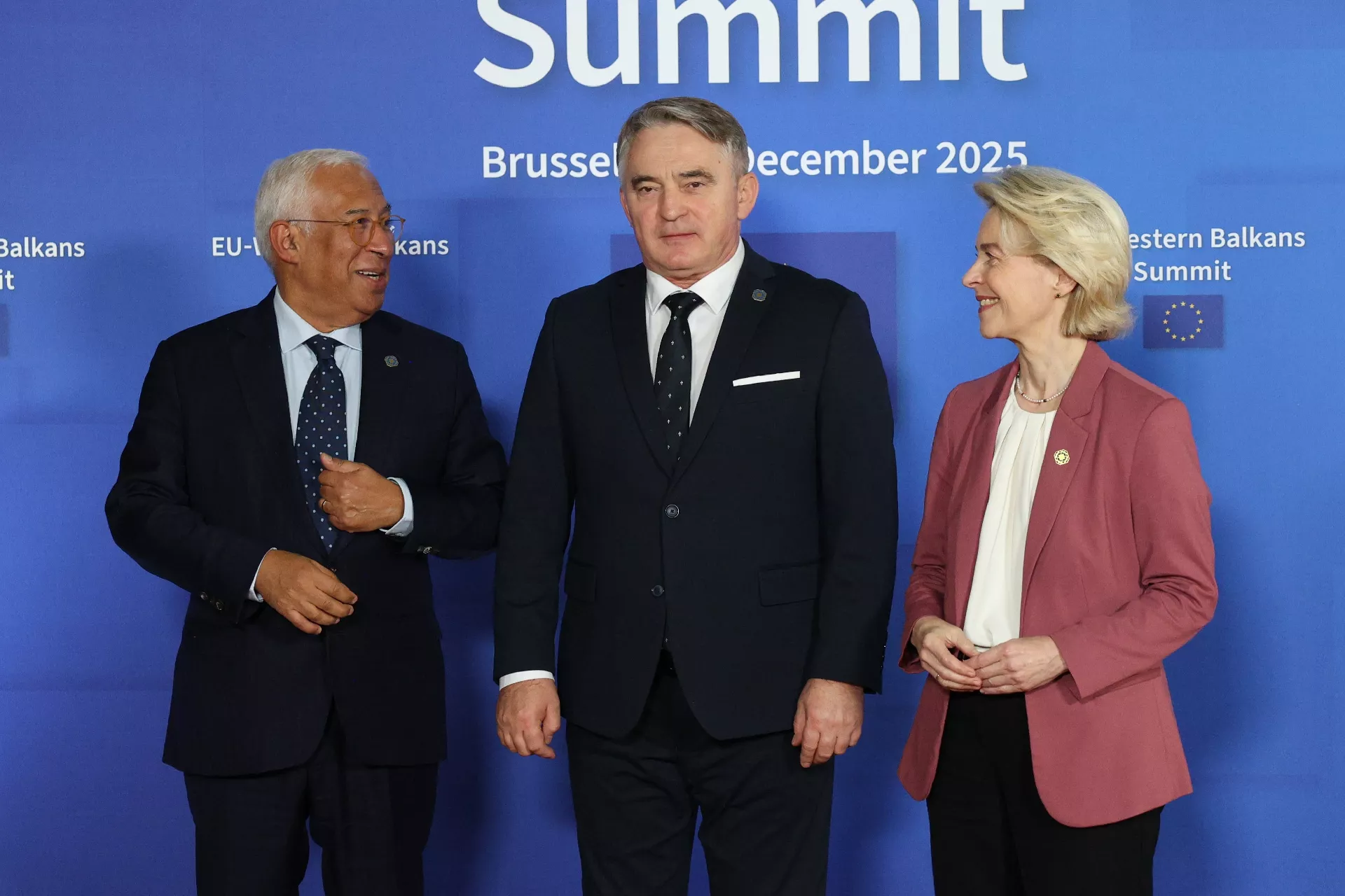 Na početku obraćanja, Komšić je predsjedniku Evropskog vijeća Antoniju Costi i čelnici Evropske komisije Ursuli von der Leyen zahvalio na pozivu za učešće.