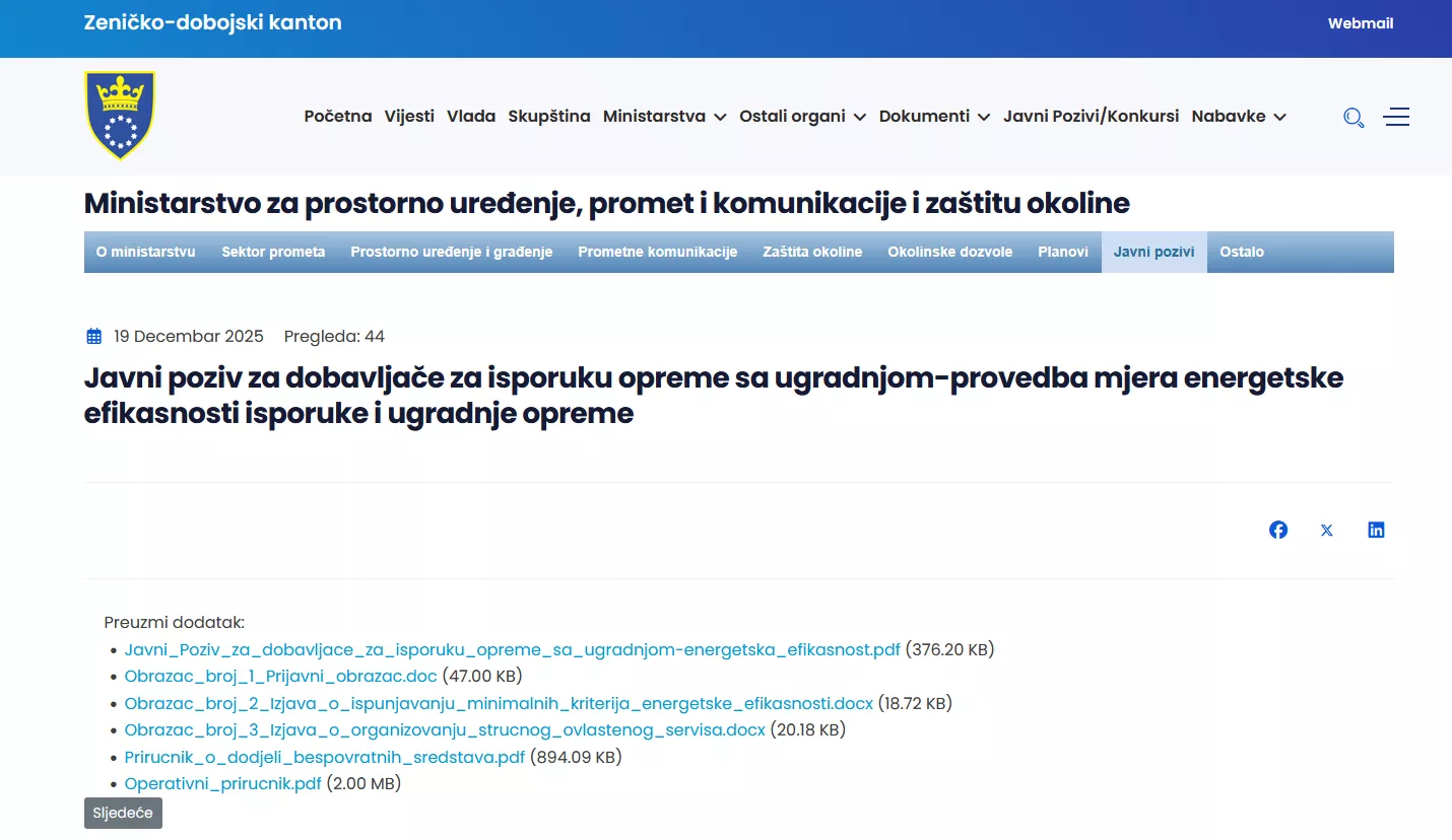 Tekst Javnog poziva, obrasci i prateća dokumentacija dostupni su na web-stranici Vlade ZDK.