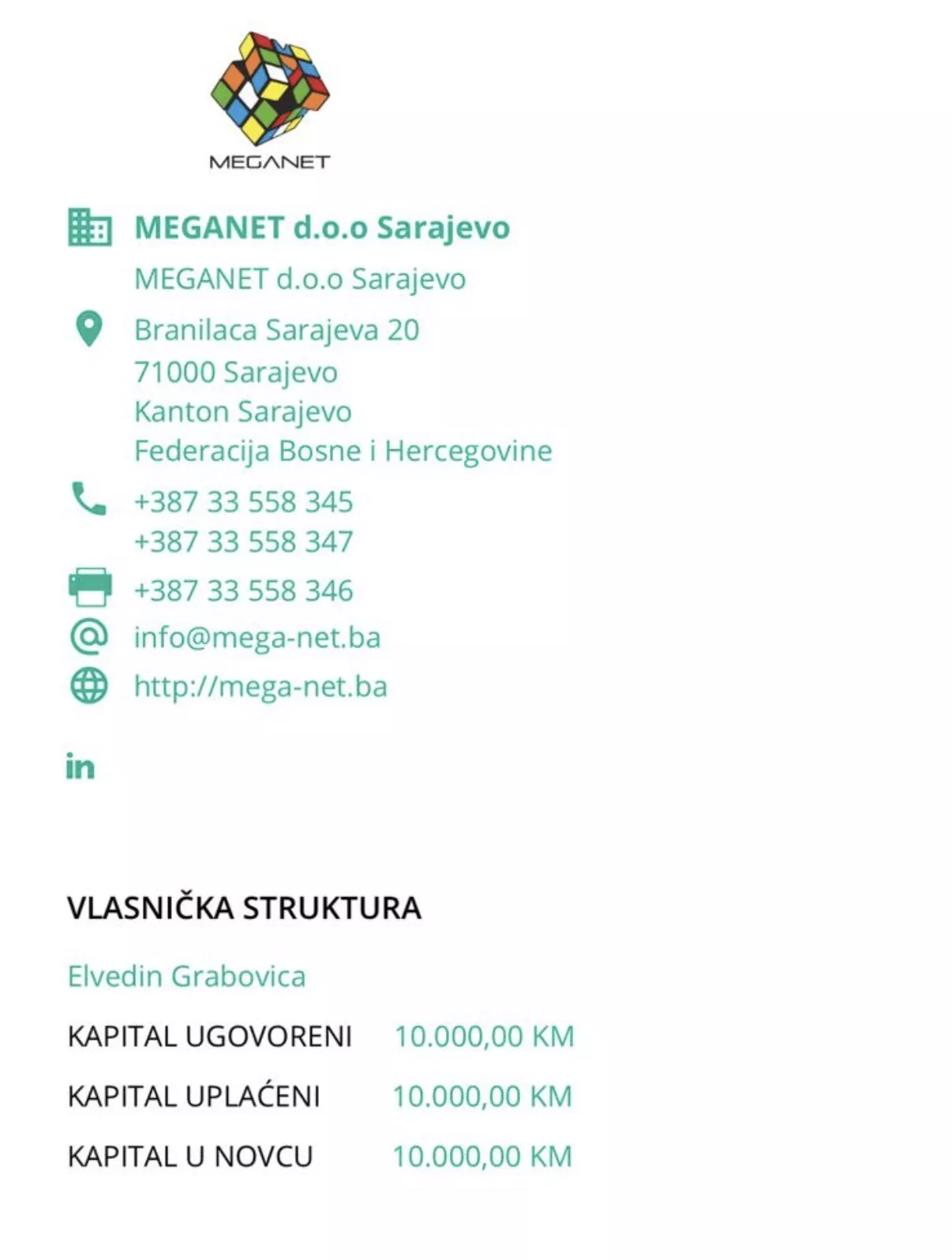 Inače, kompanija Meganet bila je suosnivač kompanije Carbid Alati u Konjicu. Drugi suosnivači su bili federalni premijer Nermin Nikšić, njegov brat Mirsad Nikšić te premijerov sin Haris Nikšić. Dakle, u prvobitnom sudskom registru konjičku firmu Carbit alati osnovala je kompanija Meganet čiji je osnivač Elvedin Grabovica, te porodica federalnog premijera Nermina Nikšića.