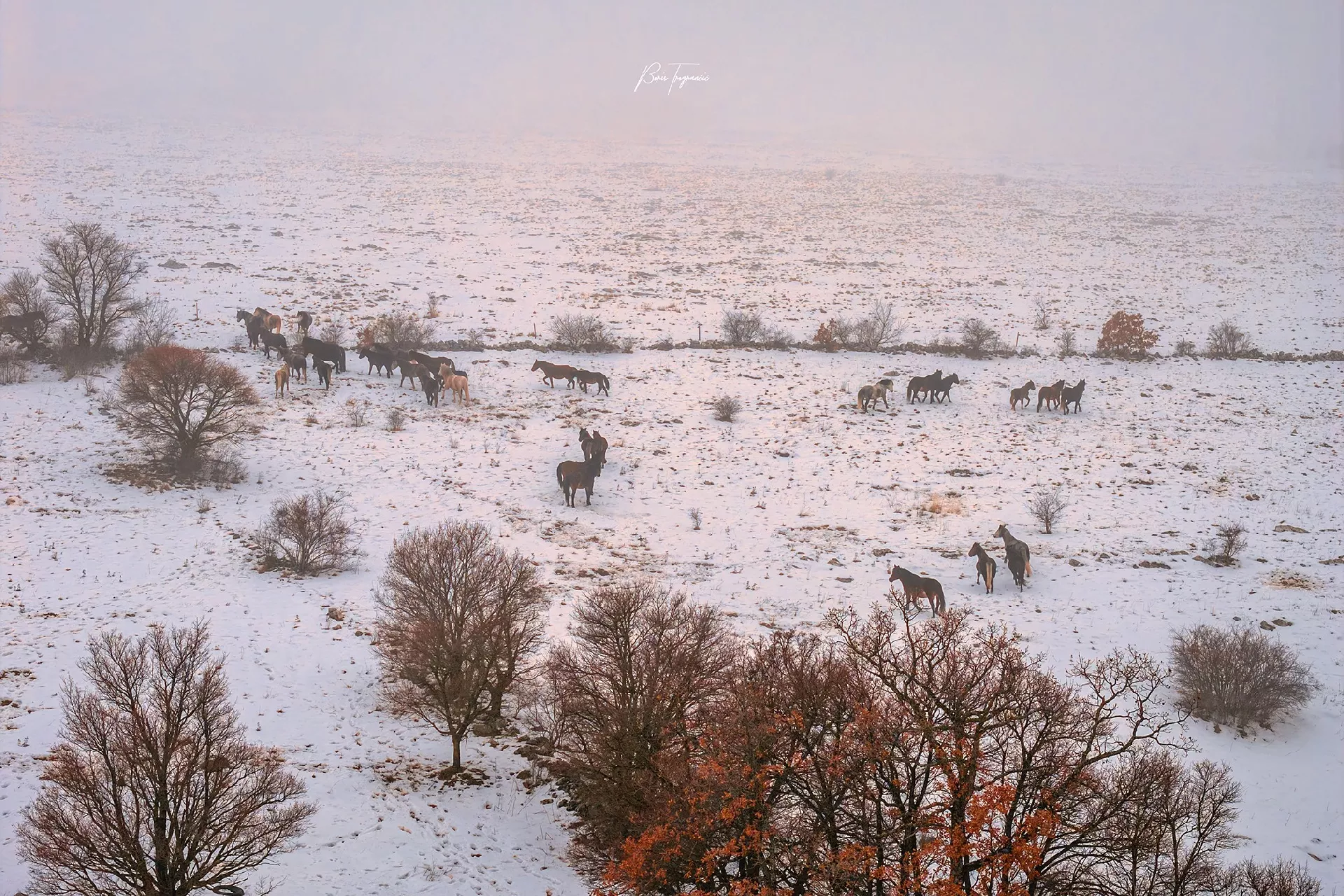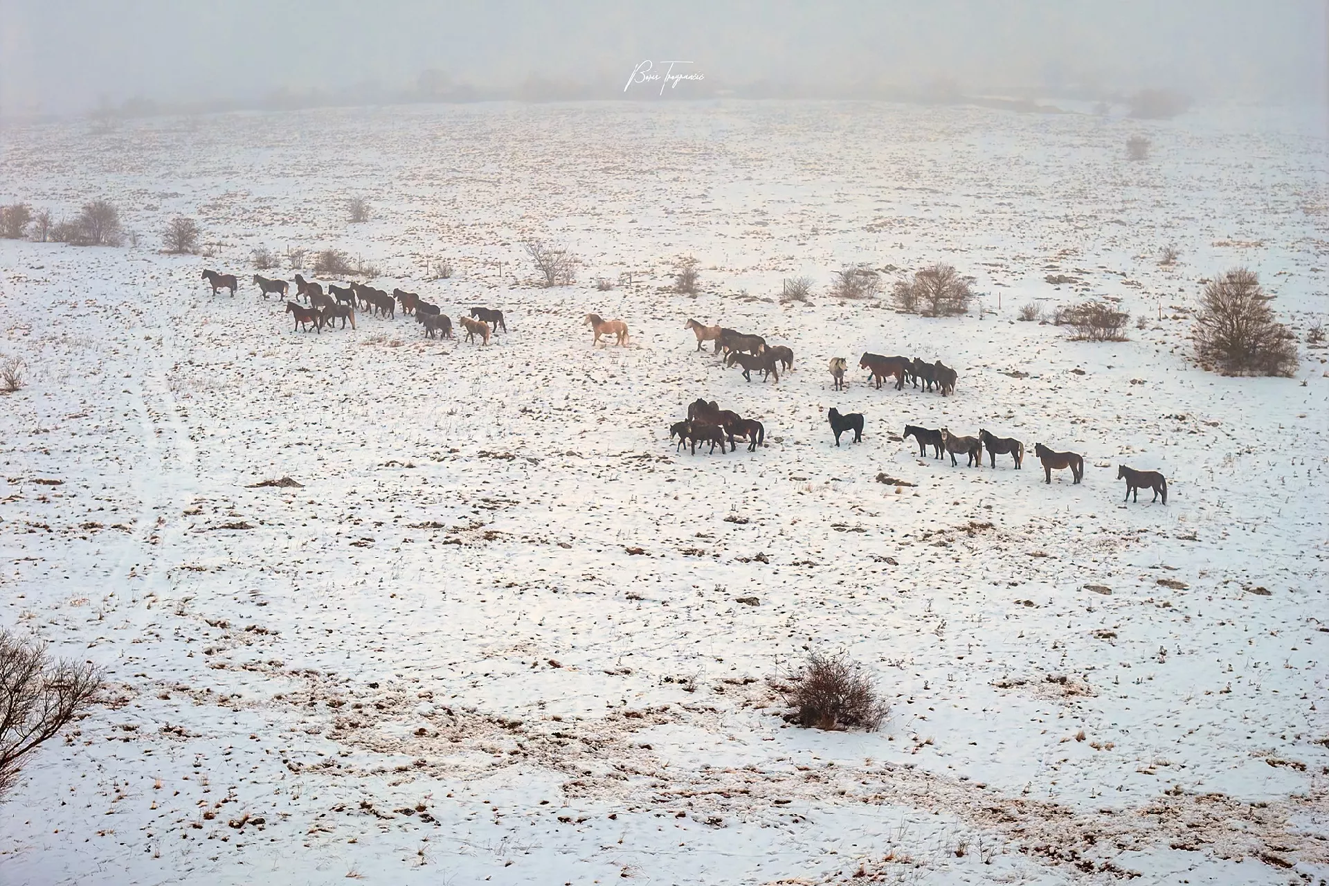 Pod vedrim nebom Bosne i Hercegovine, na visoravni Krug-planine, ispod planine Cincar, poznati fotograf Boris Trogrančić snimio je čudesnu seriju fotografija i video divljih konja u njihovom prirodnom okruženju.