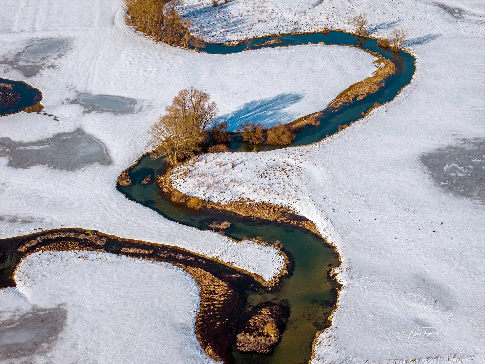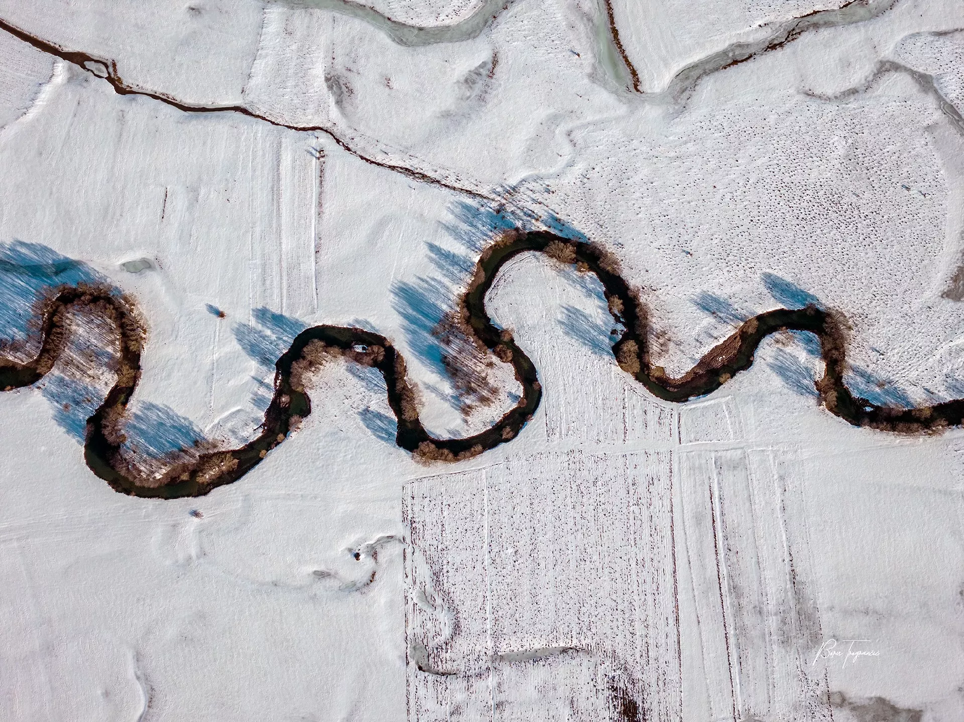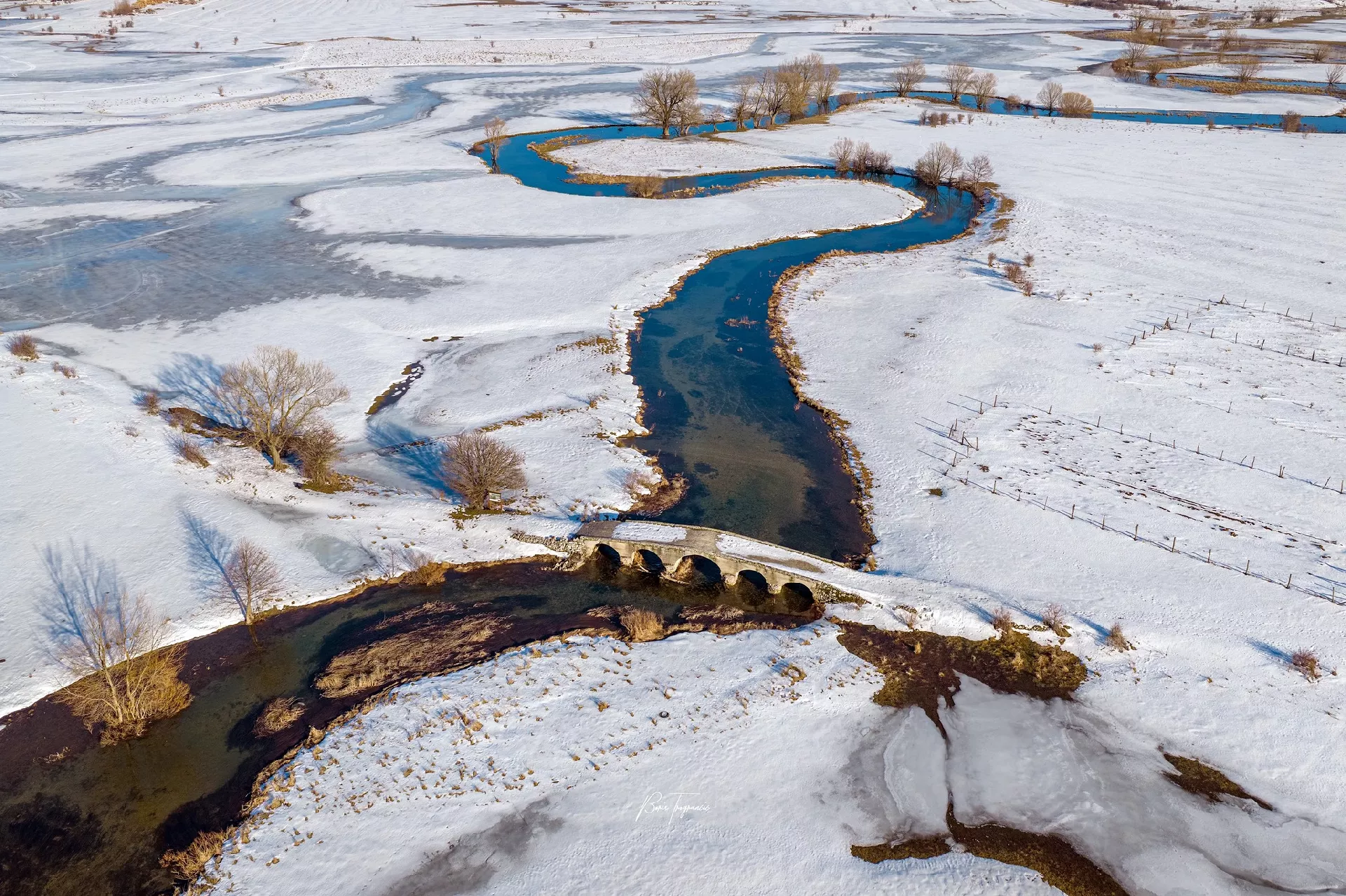 (Patria) - Poznati fotograf Boris Trogrančić objavio je galeriju fotografija i videozapis rijeke Šuice okovane snijegom i ledom, koju je bh. putopisac Zuko Džumhur svojevremeno opisao najkrivudavijom na svijetu.