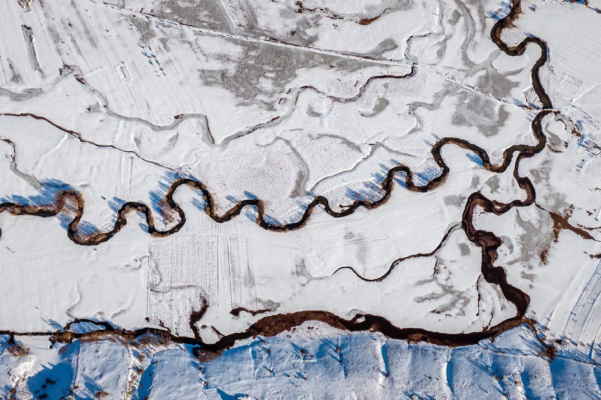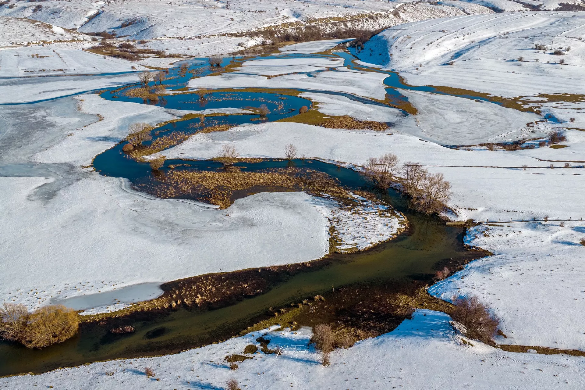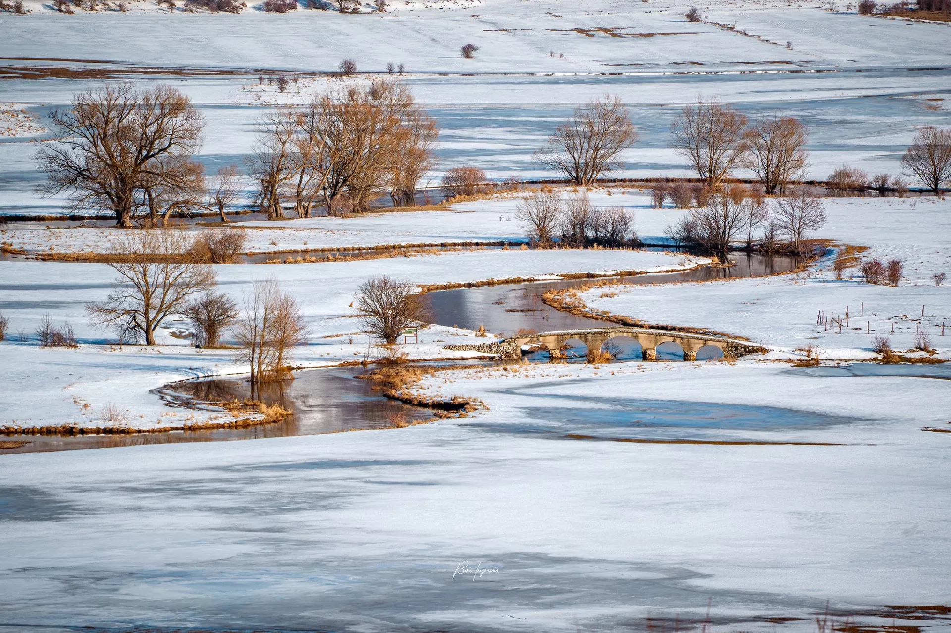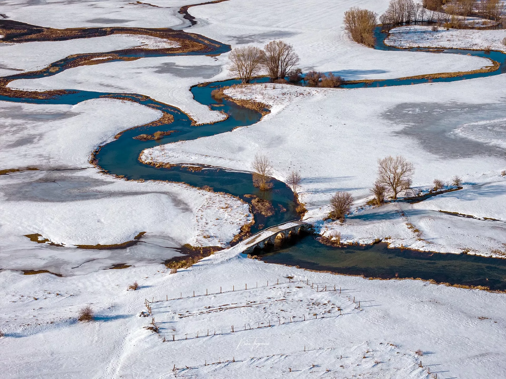 (Patria) - Poznati fotograf Boris Trogrančić objavio je galeriju fotografija i videozapis rijeke Šuice okovane snijegom i ledom, koju je bh. putopisac Zuko Džumhur svojevremeno opisao najkrivudavijom na svijetu.