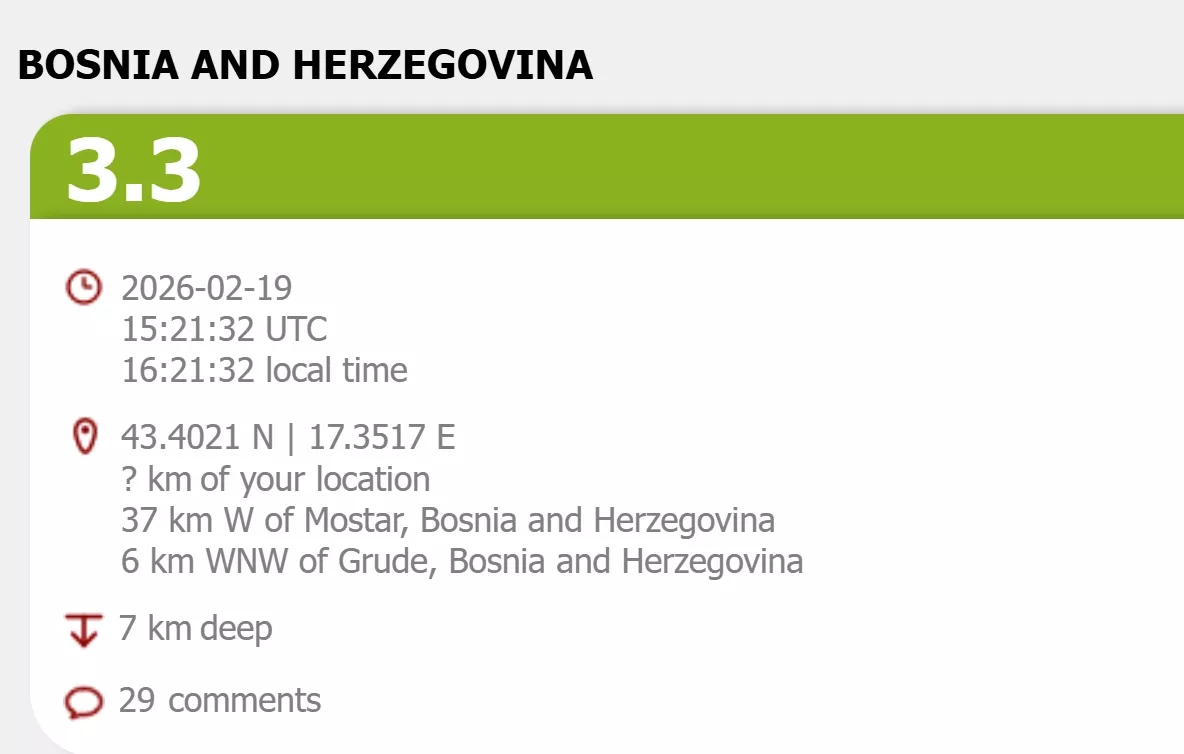 (Patria) - Dva zemljotresa uzdrmala su u večernjim satima Hercegovinu.