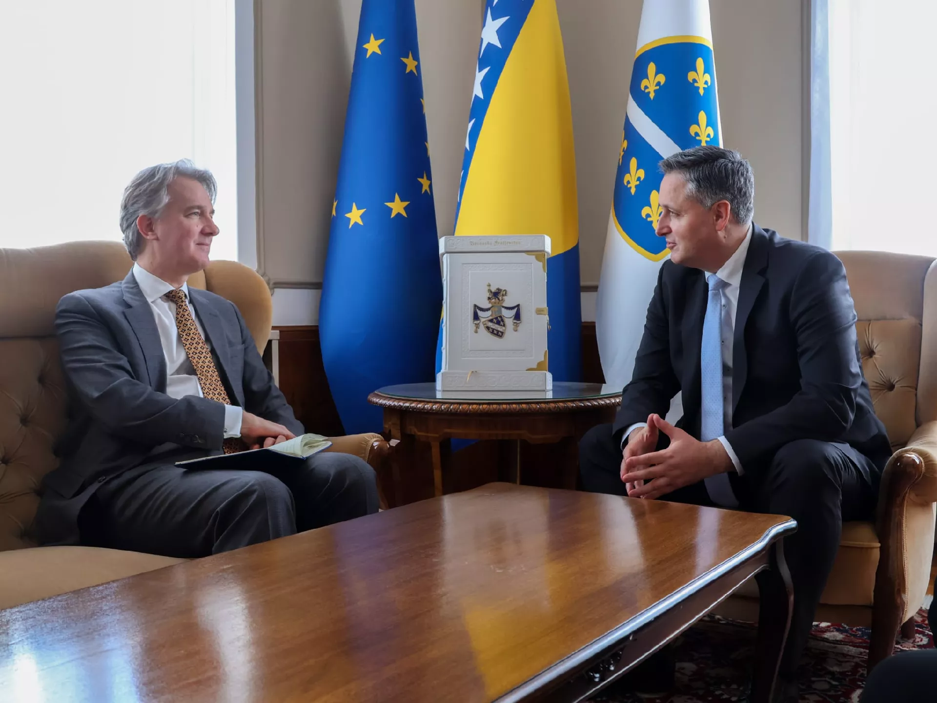 (Patria) - Član Predsjedništva BiH Denis Bećirović razgovarao je s ambasadorom Ujedinjenog Kraljevstva Velike Britanije i Sjeverne Irske (UK) u Bosni i Hercegovini Julianom Reillyjem.