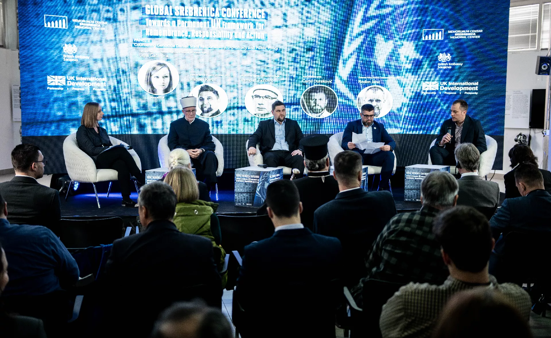 Panel "Suočavanje s negiranjem genocida: odgovornost država, diplomatija i javne politike" moderirala je Lejla Gačanica iz Ureda visokog komesara Ujedinjenih nacija za ljudska prava, a učesnici su bili Hikmet Karčić iz Instituta za istraživanje zločina protiv čovječnosti i međunarodnog prava Univerziteta u Sarajevu, Vahid ef. Fazlović, muftija tuzlanski, Ćamil Duraković, potpredsjednik entiteta Rs, te Nedim Jahić, vanjski savjetnik za inicijative Memorijalnog centra Srebrenica.