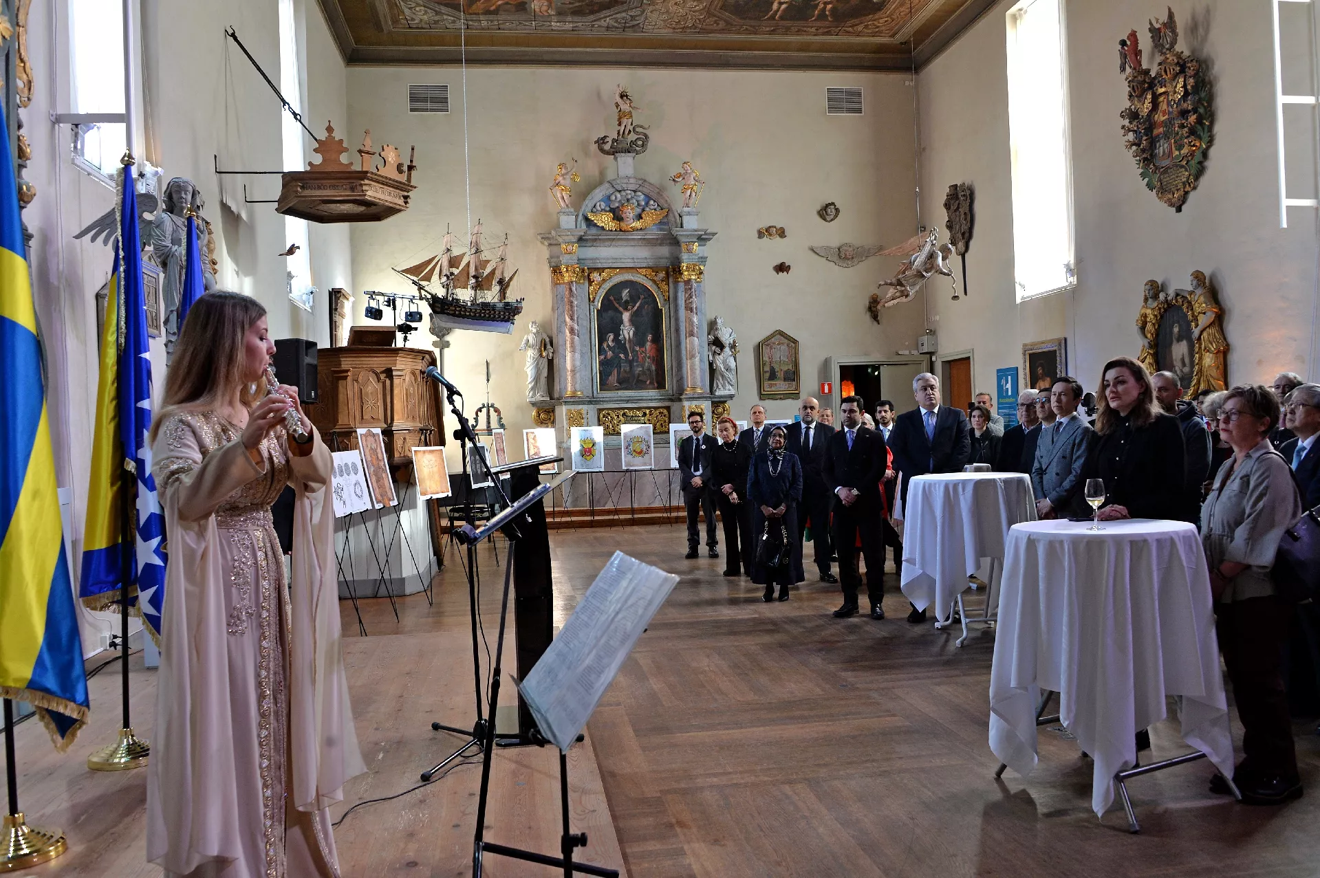 U okviru prijema upriličen je i kulturni program u kojem su nastupili Kanita Kahrimanović (flauta), Senad Kačar (gitara i vokal) i Mona Rosell (violina i vokal), dok su gosti imali priliku razgledati izložbu posvećenu heraldici srednjovjekovne Bosne, piše Patria.