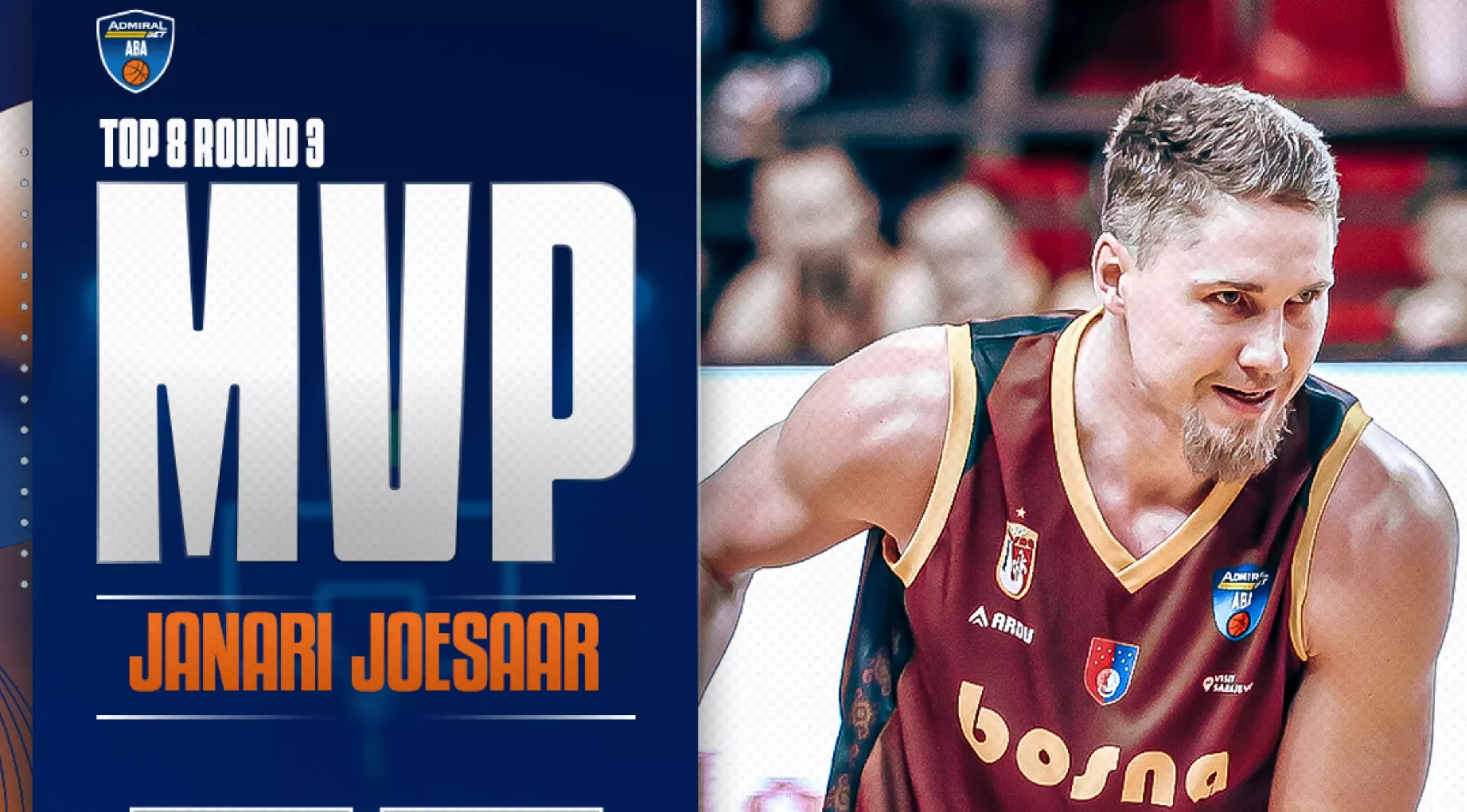 (Patria) - Košarkaš sarajevske Bosne Janari Joesaar proglašen je za najkorisnijeg igrača (MVP) prethodnog kola ABA lige nakon sjajne partije u pobjedi Studenata.