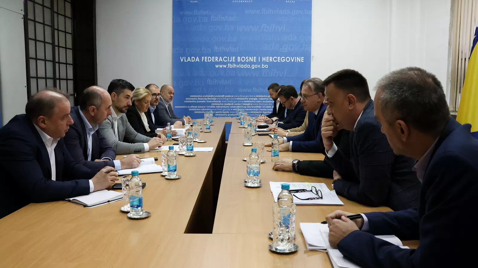 (Patria) - Premijer Federacije Bosne i Hercegovine Nermin Nikšić i zamjenik premijera Vojin Mijatović, te resorni federalni ministri Vedran Lakić, Andrijana Katić i Amir Hasičević održali su danas, u sjedištu Vlade Federacije BiH u Sarajevu, sastanak sa delegacijama Operator-Terminala Federacije d.o.o. Sarajevo BiH i JP Željeznica Federacije BiH, koje su predvodili Damir Kreso i Mirza Hadžibegić.