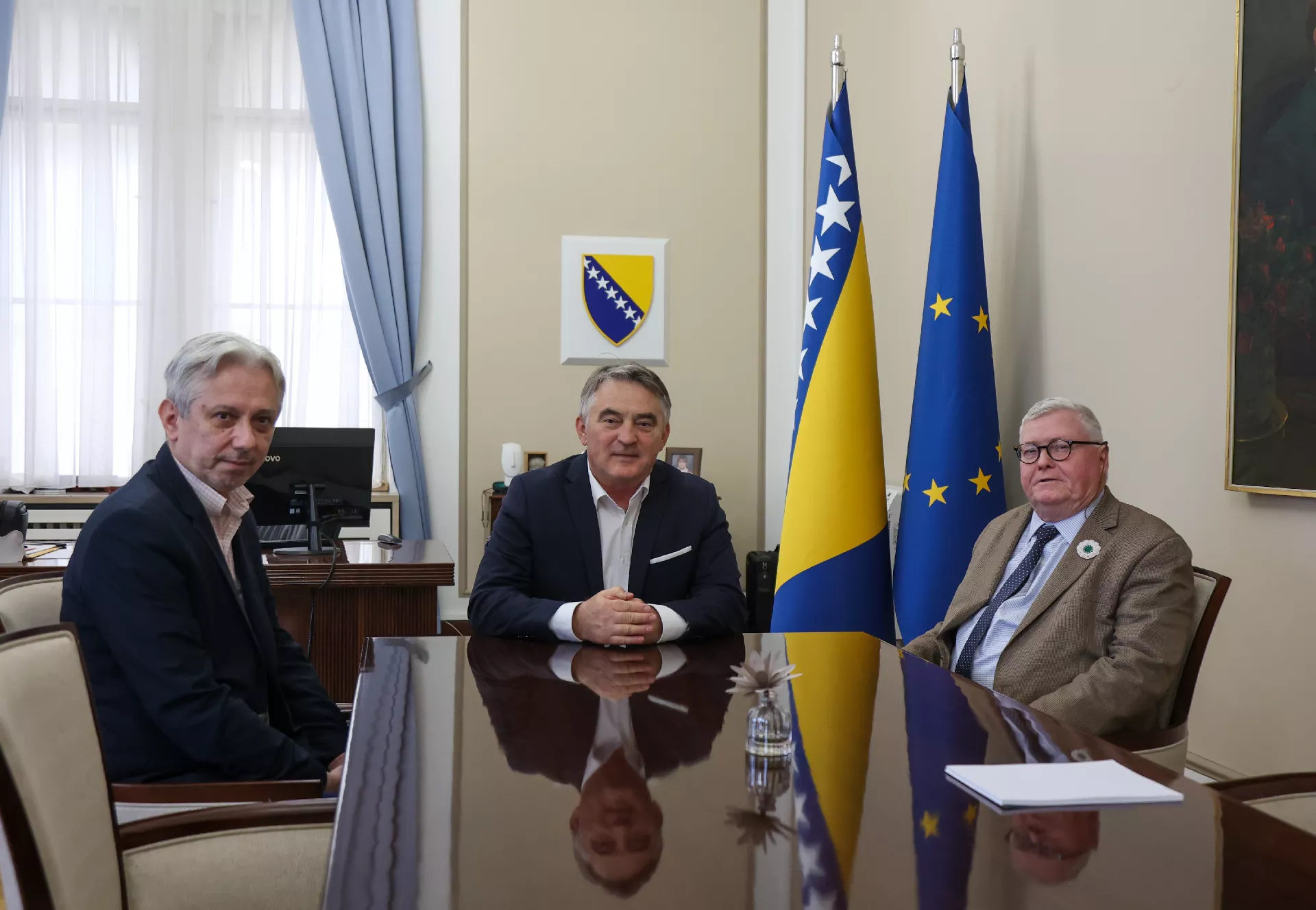 (Patria) - Član Predsjedništva BiH Željko Komšić primio je u posjetu Davida Pettigrewa, CSU profesora s Univerziteta u Connecticutu, koji je nedavno proglašen počasnim građaninom grada Sarajeva.