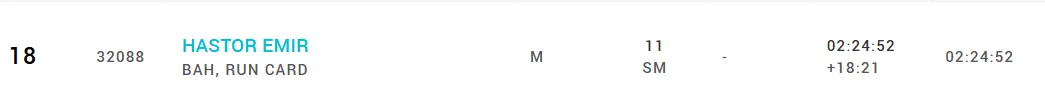 (Patria) - Najbolji bosanskohercegovački maratonac Emir Hastor zauzeo je 18. mjesto u ukupnom poretku na Rimskom maratonu, istrčavši 42,195 kilometara za 2 sata 24 minute i 52 sekunde. A u muškoj kategoriji zauzeo je 17. mjesto.