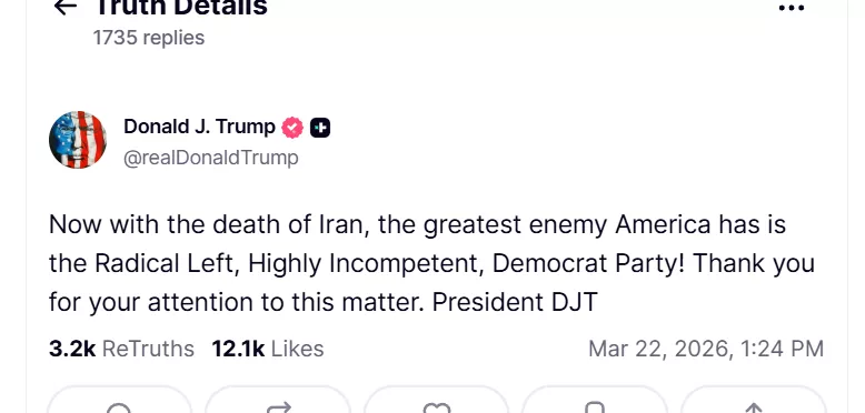 "Sad, kad je Iran mrtav, najveći američki neprijatelj su radikalna ljevica i krajnje nesposobna Demokratska stranka!", poručio je predsjednik SAD-a Trump.