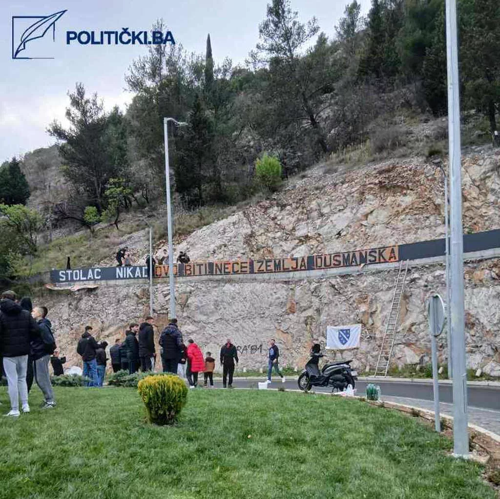 Danas je došlo do kontra reakcije Bošnjaka Stoca koji su na tom mjestu postavili svoje murale uz zastave Republike BiH.