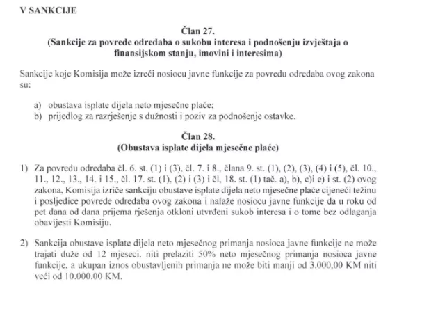 Ovim zakonom predviđene su i različite sankcije kada se utvrdi sukob interesa ili druge povrede ovog zakona.
