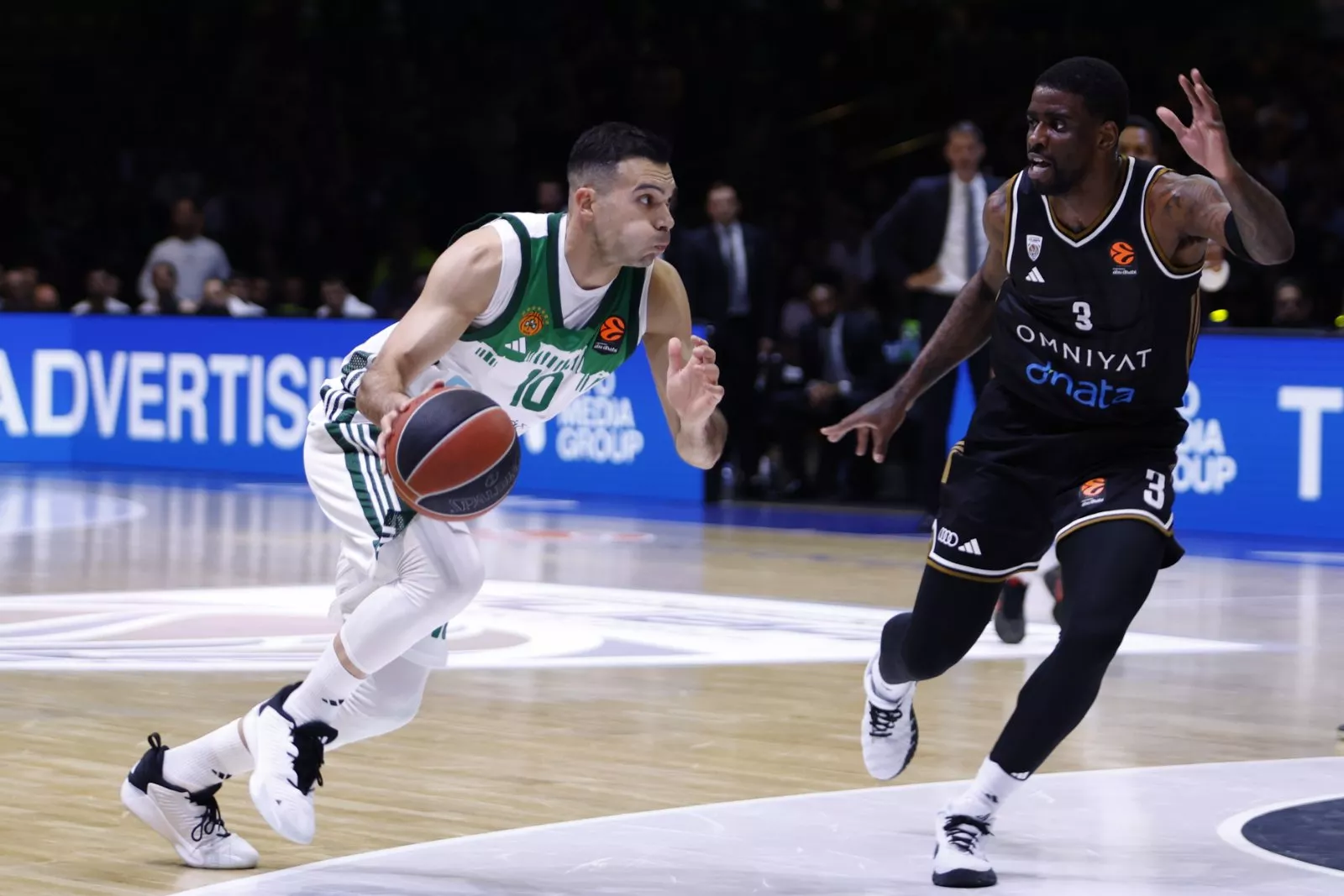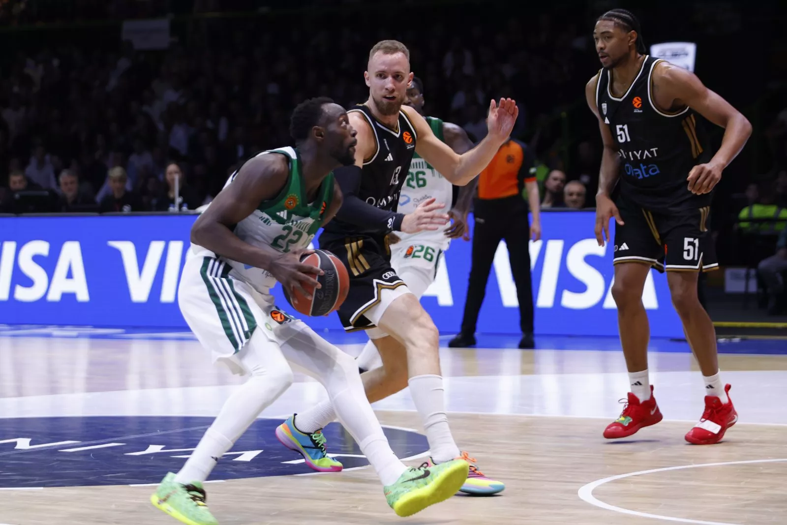 Ipak, Panathinaikos je do kraja poluvremena podigao nivo igre i uspio gotovo u potpunosti anulirati zaostatak pa se na odmor otišlo pri rezultatu 50:47.
