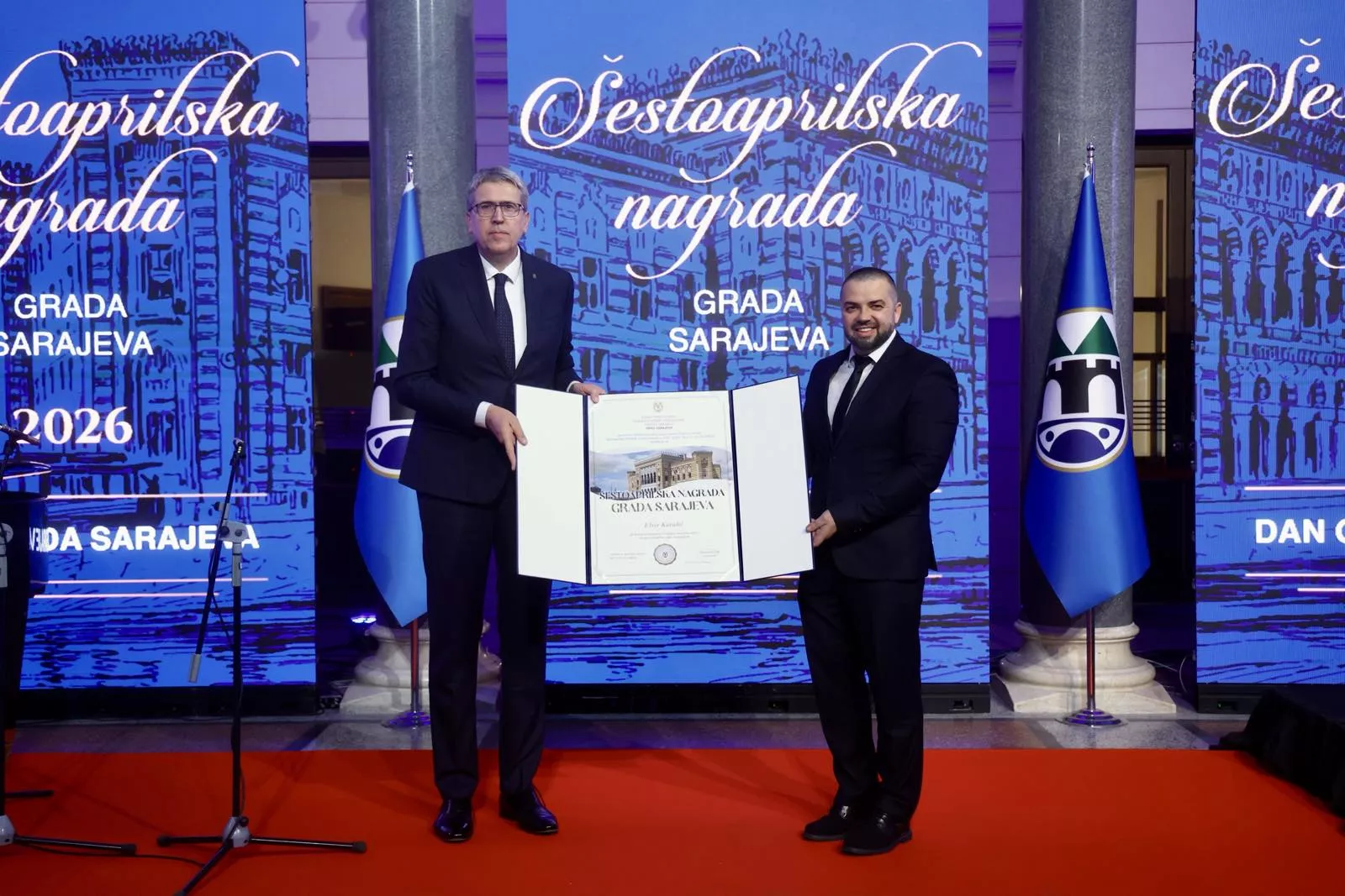 Avdić i Girt su dodijelili Šestoaprilske nagrade i druga priznanja dobitnicima, a prethodno se zvanicama obratila i predsjedavajuća Odbora za dodjelu "Šestoaprilske nagrade Grada Sarajeva" Svjetlana Šošić.