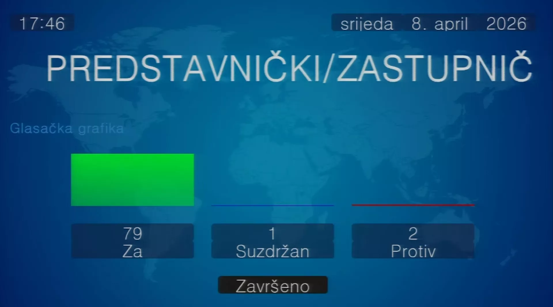 Podršku ovom zakonskom rješenju dalo je ukupno 79 zastupnika, dva su bila protiv, a jedan suzdržan.