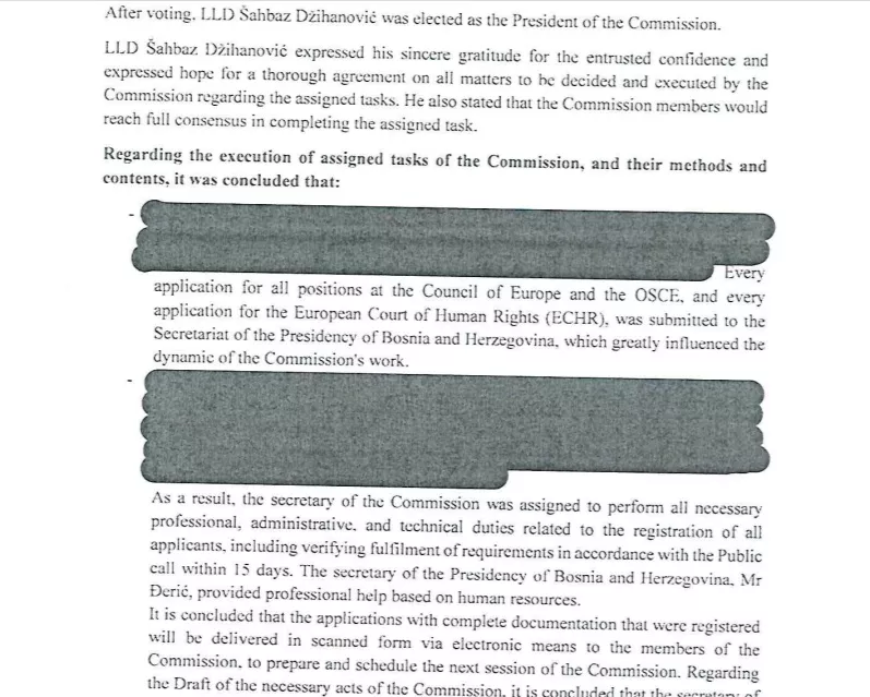 Kako je ranije objavila Istraga, Šahbaz Džihanović, bivši sudija Ustavnog suda Federacije BiH, koji je bio na čelu Komisije koju je imenovalo Predsjedništvo za izbor sudije ESLJP, obavijestio je Predsjedništvo o potezima MVP-a BiH koji su doveli do potpune konfuzije u Vijeću Evrope, ali i među članovima državnog Predsjedništva.